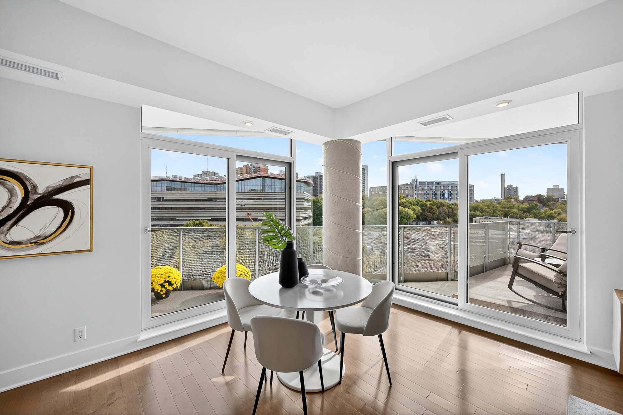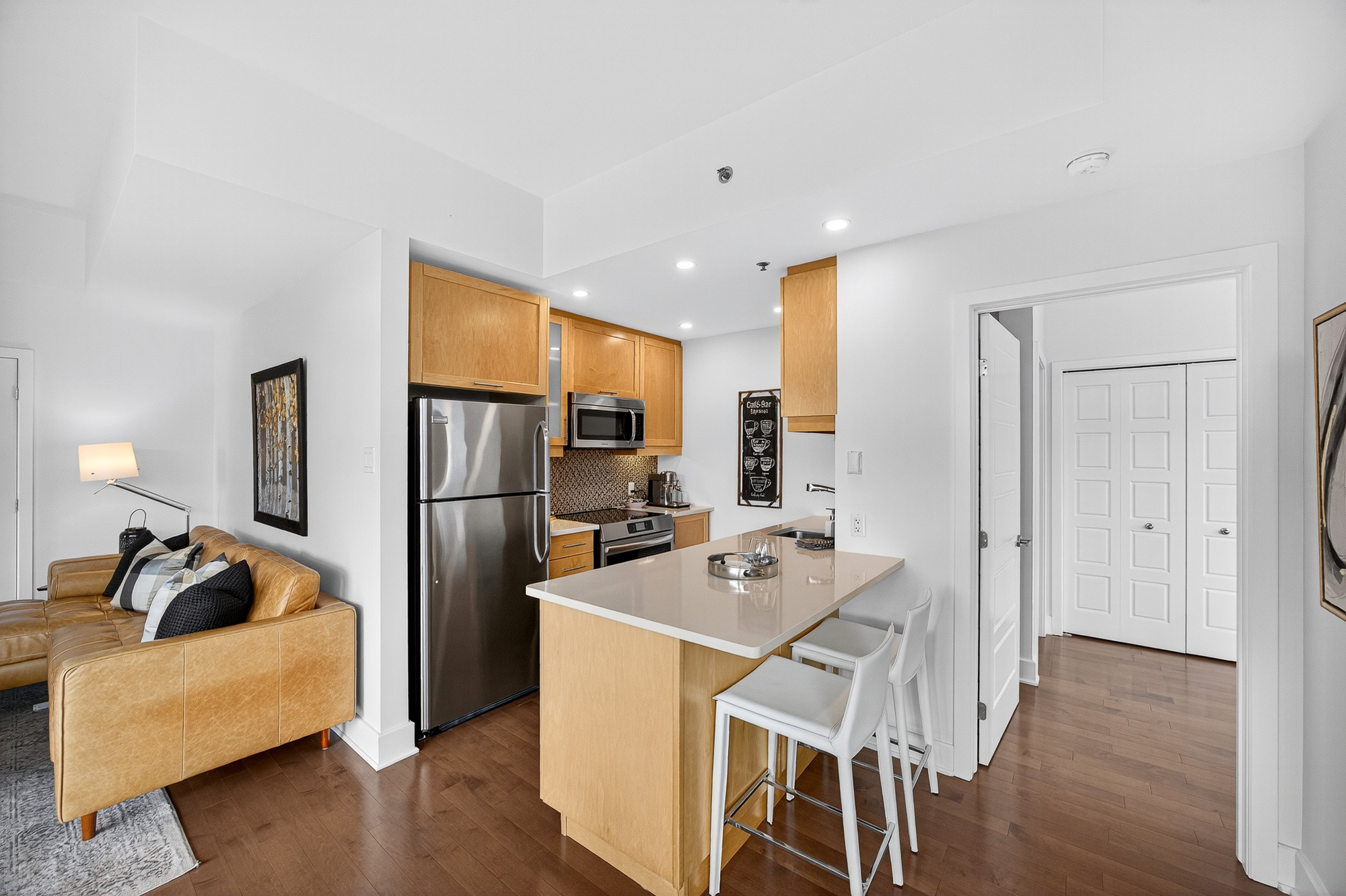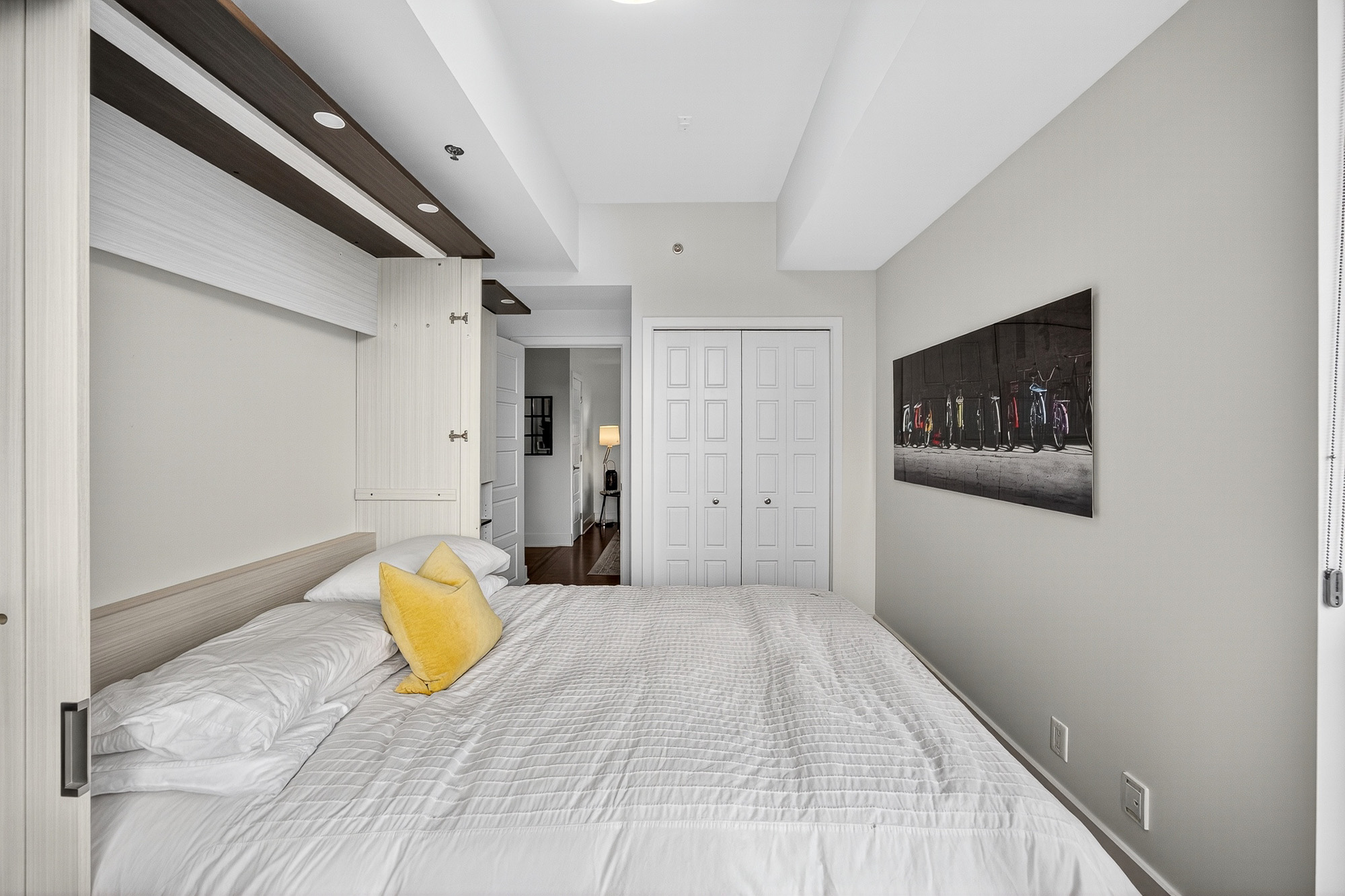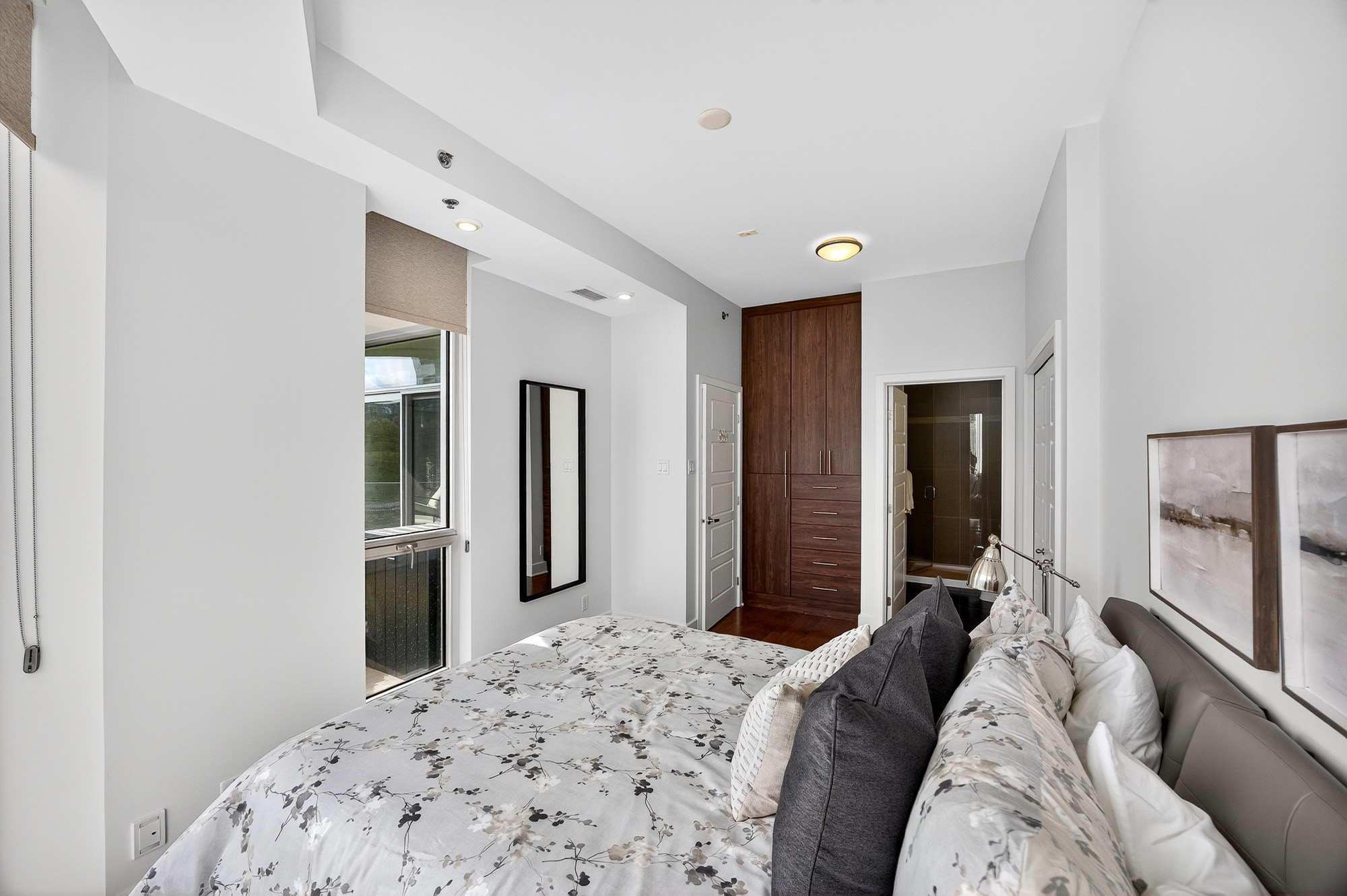 The open-concept layout has hardwood floors and high-quality finishes. The kitchen is both functional and attractive, with quartz countertops, stainless steel appliances and LED pot lights. Two private balconies provide outdoor space for relaxing or entertaining. Upgrades like California Closets, an upgraded washer and dryer, and enhanced lighting make daily living easy and practical.