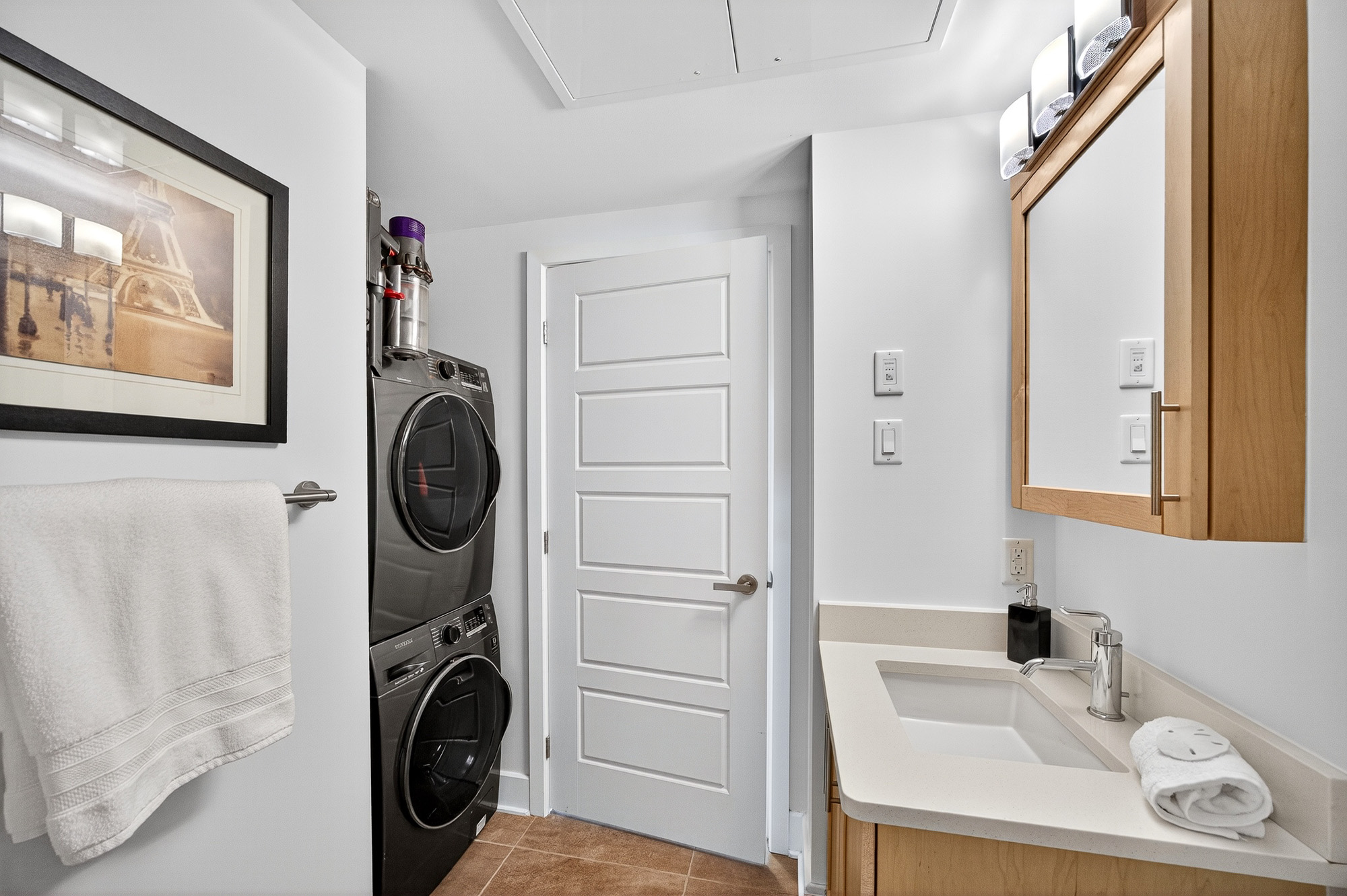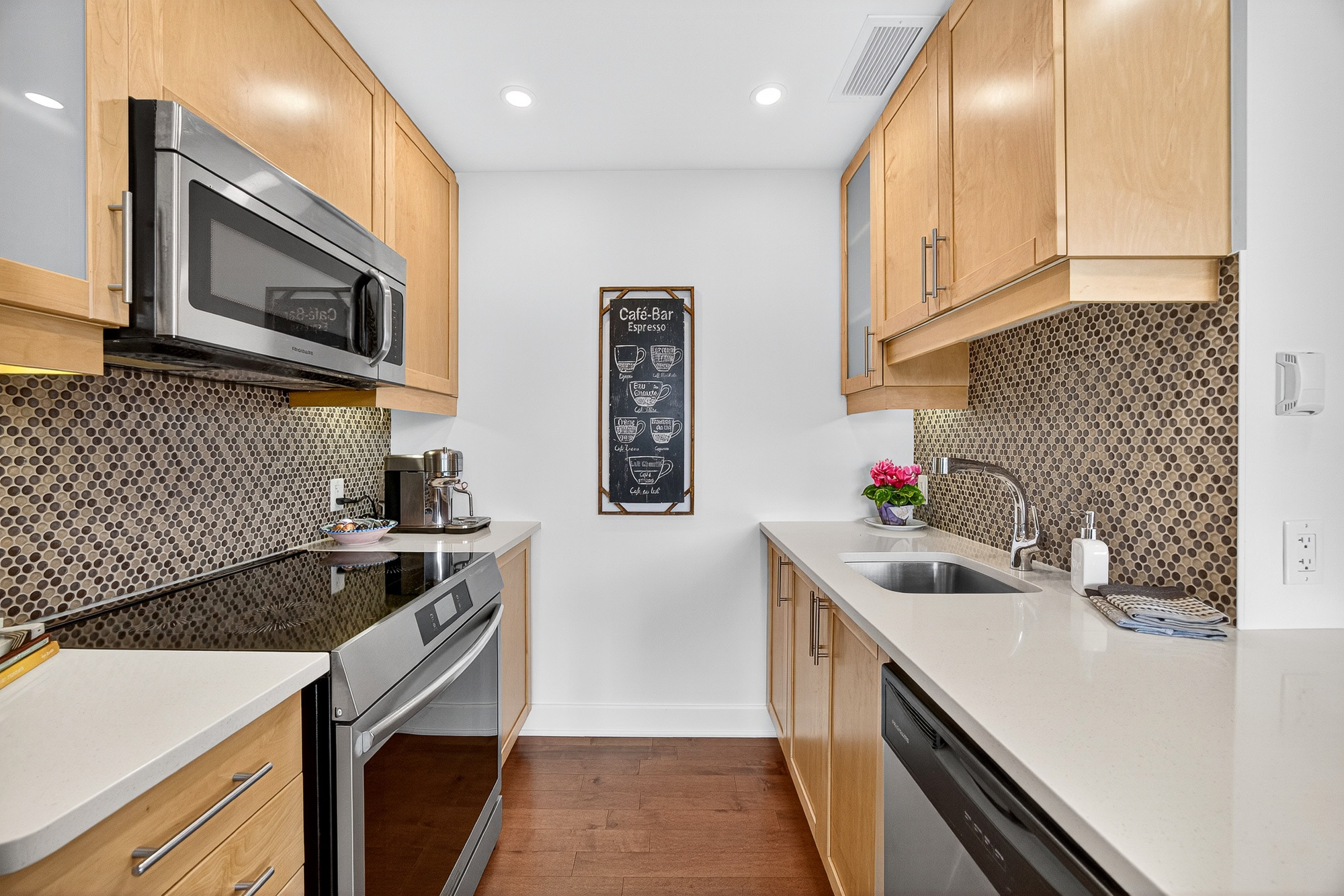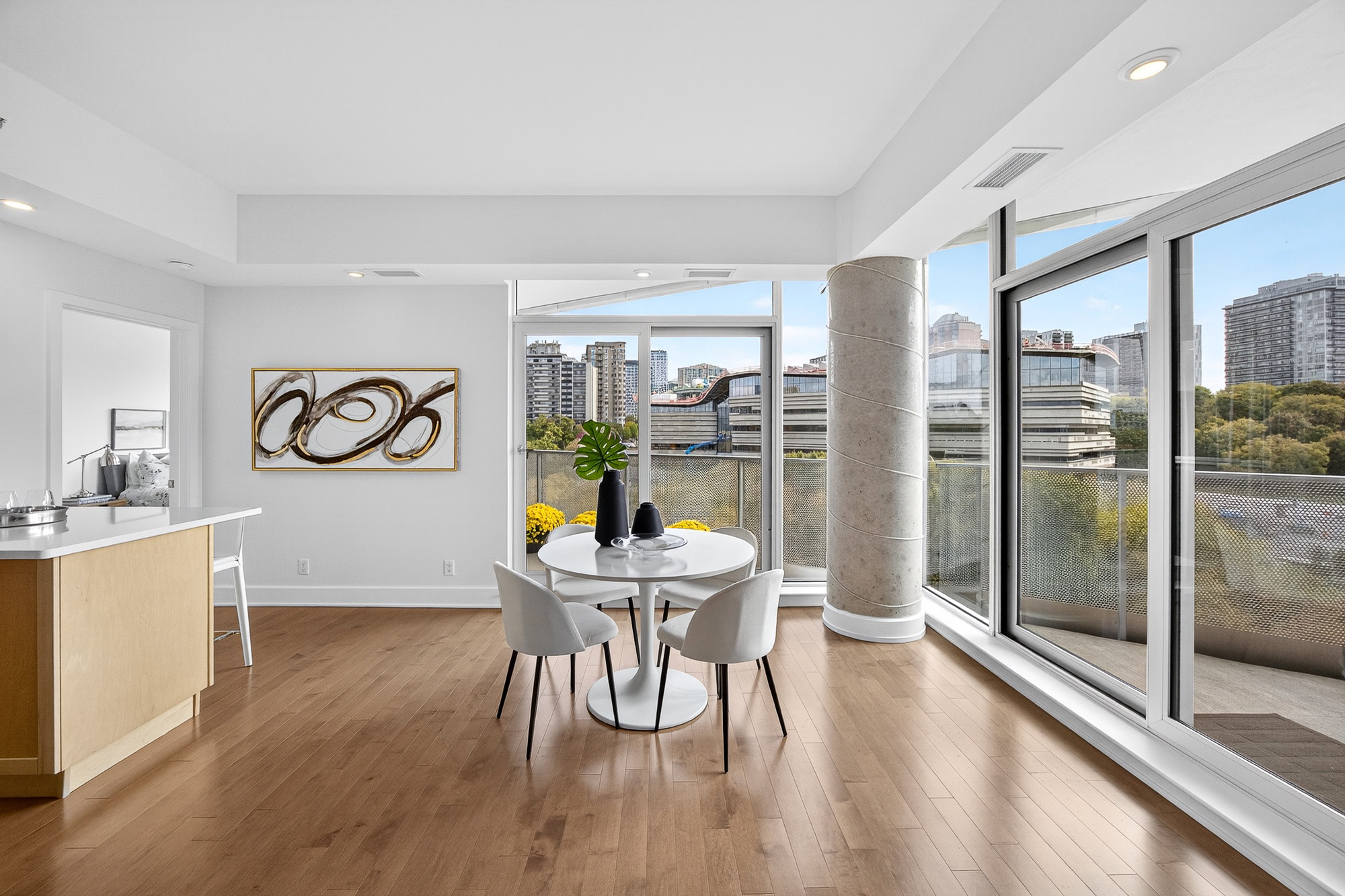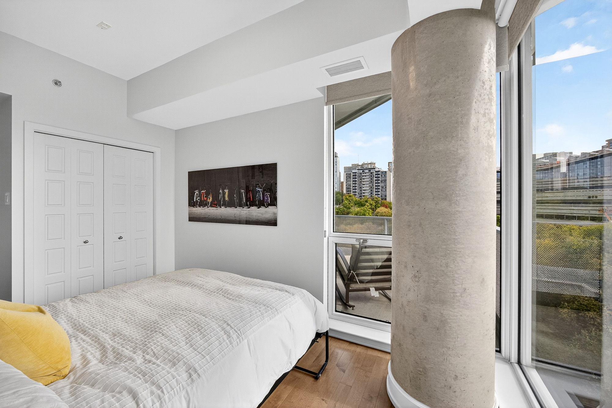 The open-concept layout has hardwood floors and high-quality finishes. The kitchen is both functional and attractive, with quartz countertops, stainless steel appliances and LED pot lights. Two private balconies provide outdoor space for relaxing or entertaining. Upgrades like California Closets, an upgraded washer and dryer, and enhanced lighting make daily living easy and practical.