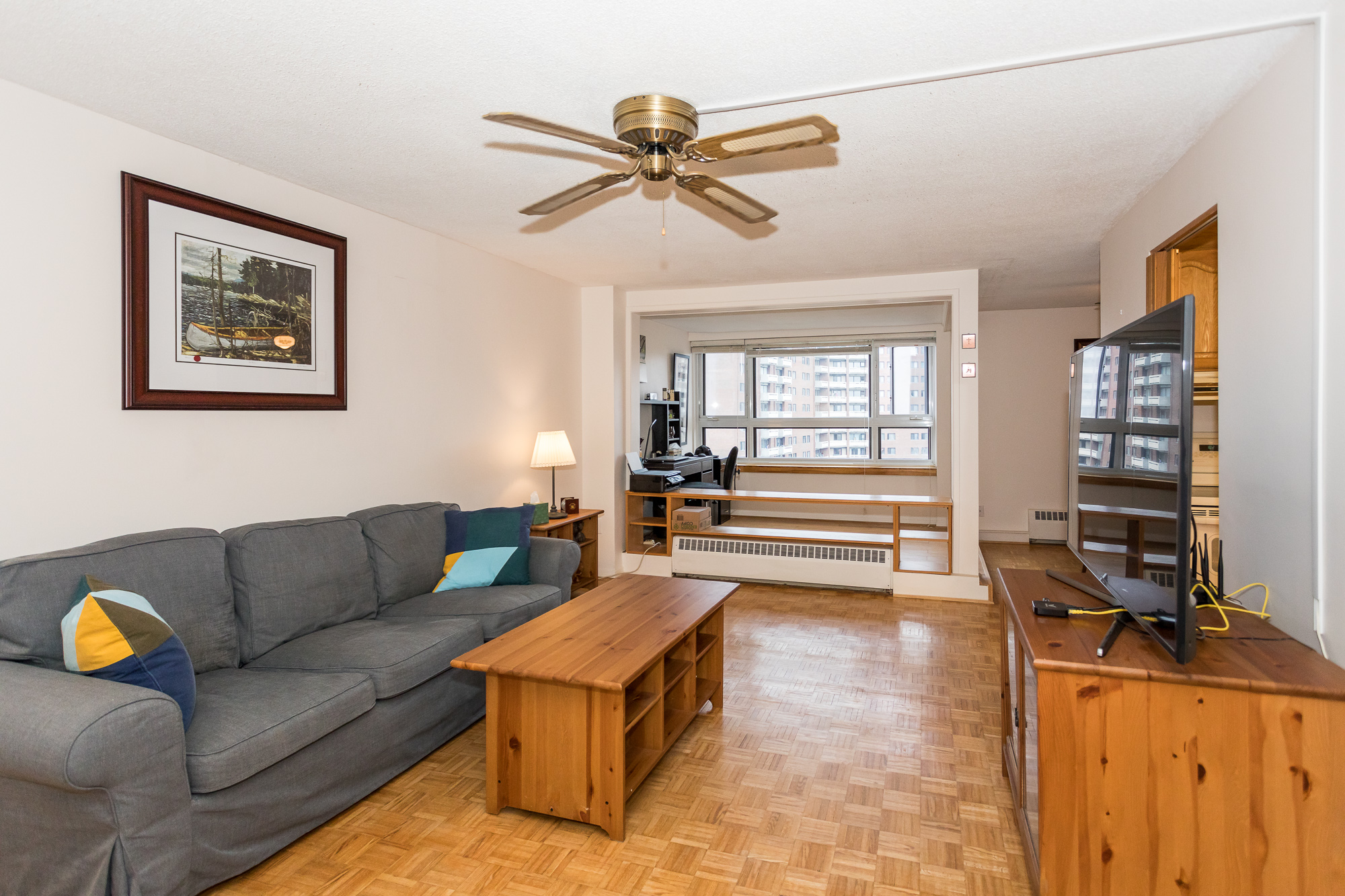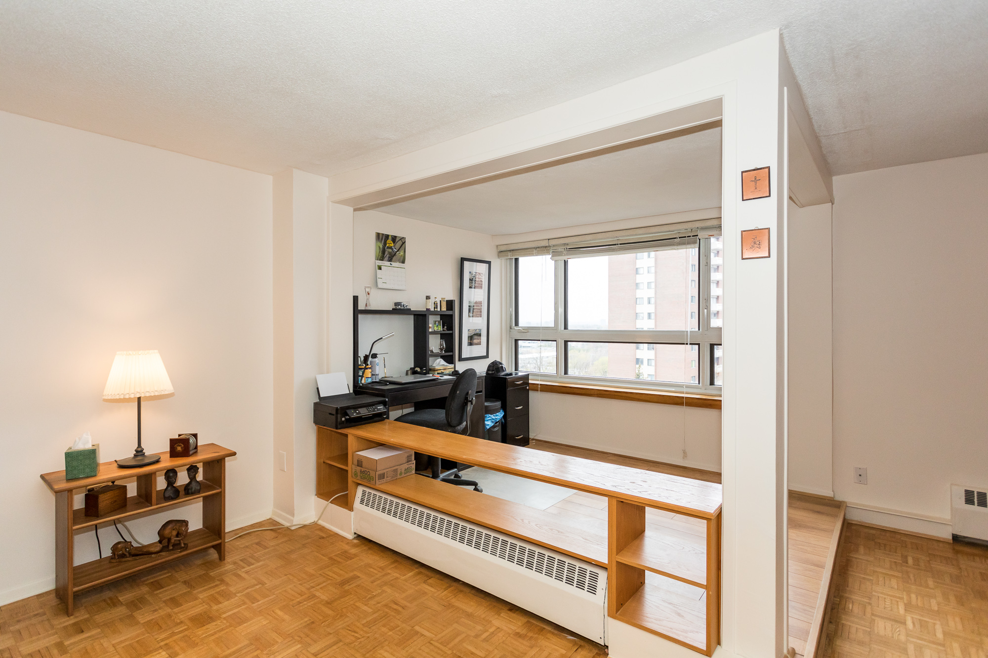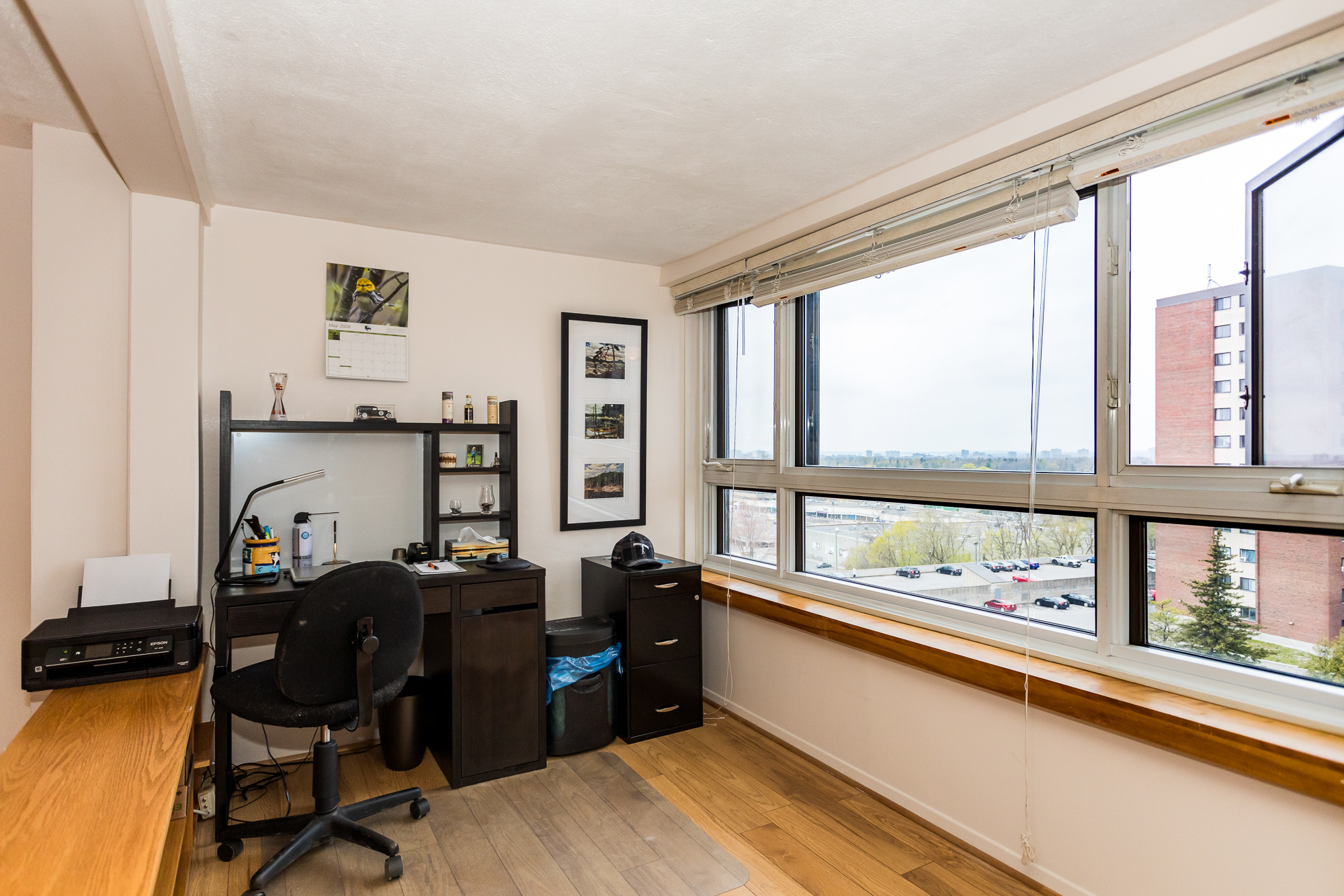Open Concept Unit with Sweeping Views! This well maintained unit is in an amazing location, conveniently located within walking distance to all amenities. The unit features a large living room with formal dining room space great for daily use and entertaining. There is a bonus space which is perfect for your home-office set up, with unobstructed views as far as the eye can see. The bedroom is large with good closet space. Kitchen is tidy and very functional! Condo fees include heat, hydro and water and the building has great amenities including an outdoor pool in a park-like setting, exercise room, party room, library and beautifully maintained common areas. There is a storage locker and underground parking included. Public transportation is located just steps away and plenty of access to green space in order to enjoy the outdoors without going far. This unit is perfect for owner-occupied, downsizers, first time buyers, and investors!
